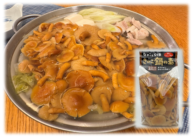 旨味豊かなくり茸となめこを使った、きのこの風味が楽しめる鍋の素です。かつお風味のだしに白だしと薄口醤油を合わせた、上品でコクのある味わいが特徴です。濃縮タイプなので、好みに合わせて味の濃さを調整でき、野菜や肉、〆のうどんや雑炊ともよく合います。